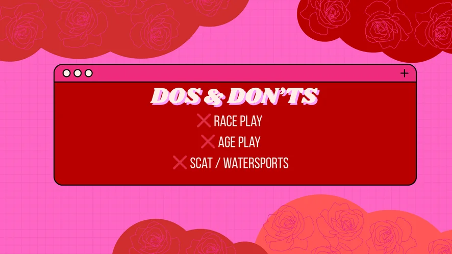 Dildo eller vibrator, Skittensnakk, Onani, Sexleketøy, Toppløs, Twerk, Stripping, Rollespill, Onaneringsinstruksjon, Gagging, Blowjob, Kukkvurdering, Deepthroat, Erotisk dans, Fingring, Hæler, Spanking, Puppeknull